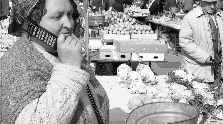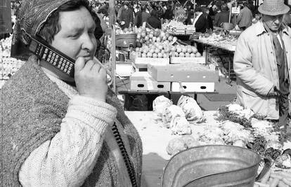 Među najupečatljivijim fotografijama ističe se ona 'kumice' s tržnice na Trešnjevci, koja u rukama drži jedan od prvih mobilnih telefona. Masivan, nespretan koji je daleko od današnjih pametnih uređaja, tada je bio simbol tehnološkog napretka i statusni znak. Kontrast između tradicionalnog tržničkog ambijenta, šarenih plahti punih povrća i novog “čuda tehnike” u rukama obične Zagrepčanke izaziva poseban dojam. Fotografija savršeno prikazuje trenutak kada su ljudi mogli obavljati posao bez smartphonea koji se danas koristi.