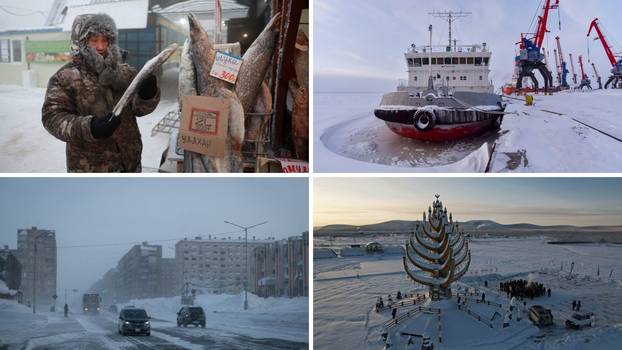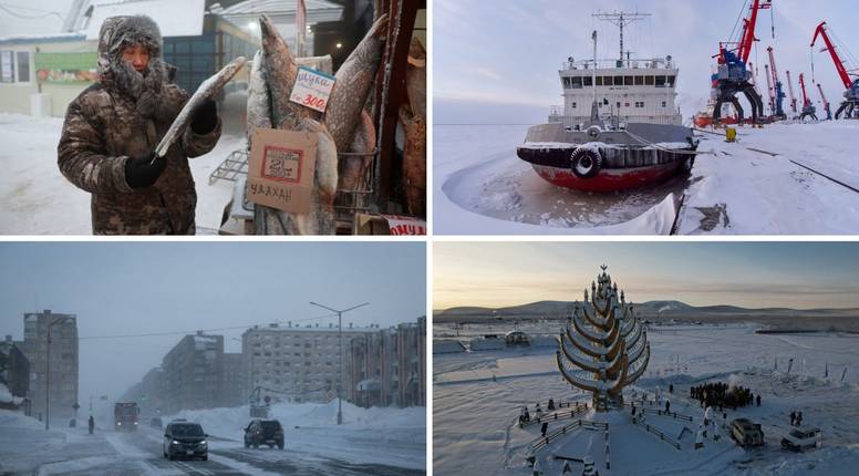 Dudinka, Rusija: Luka okovana ledom: U blizini Norilska, na obalama moćne rijeke Jenisej, smjestio se lučki grad Dudinka. Kao ključna luka za transport ruda iz Norilska, život u Dudinki u potpunosti ovisi o plovidbi. Zimi temperature padaju ispod -50 °C, a rijeka se pretvara u debeli ledeni pokrivač kojim prolaze samo moćni ledolomci. Grad je poznat po ekstremnim snježnim olujama, poznatim kao "purga", koje mogu trajati danima, stvarajući snježne nanose koji zatrpavaju zgrade do drugog kata i u potpunosti paraliziraju život.