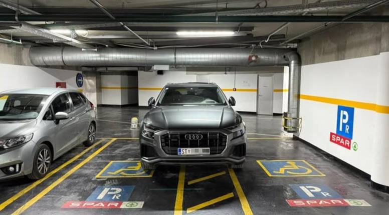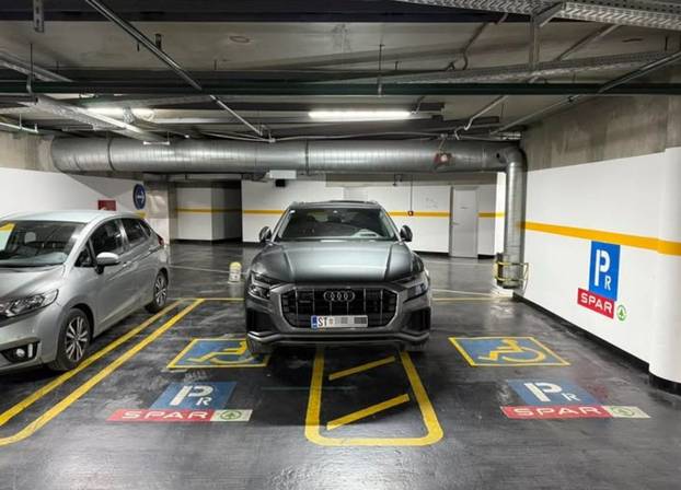 Nesavjesni vozač ili vozačica iz Splita osvanuo je na Facebook grupi 'Split i okolo Splita'. Na fotografiji je Audi u podzemnoj garaži parkiran preko čak dva mjesta za invalide.
