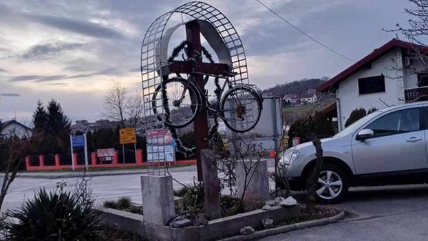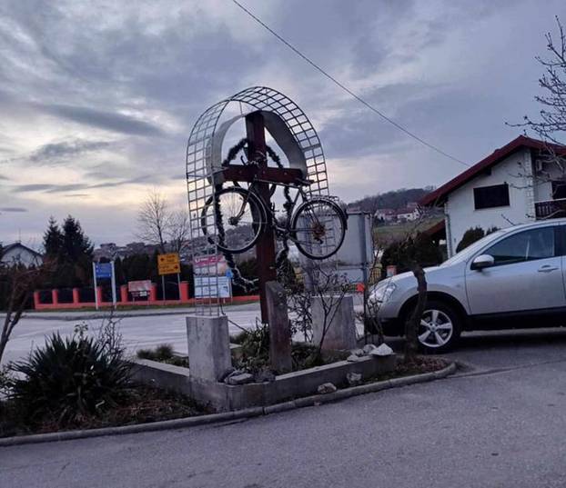 'Nevjerojatno! Netko je stavio bicikl na raspelo na Isuseka u Bedekovčini kod DVD-a', piše u opisu fotografije.