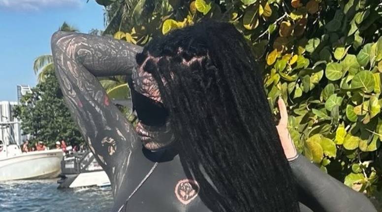 Njezine tetovaže često uključuju tamne, crne uzorke i motive.