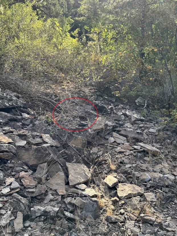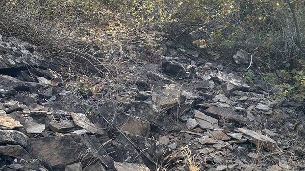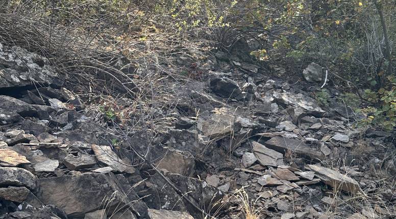 Ispod se nalazi slika krševitog terena s brojnim razbacanim kamenjem i komadima škriljevca.
