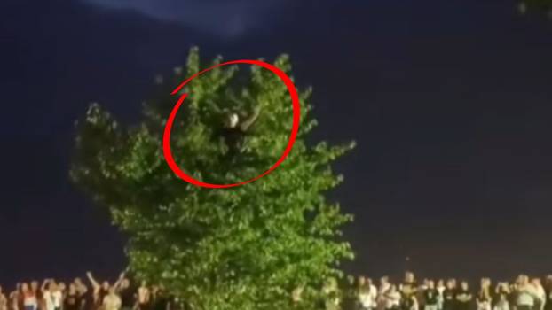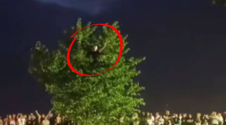 Dok su stotine tisuća ljudi na koncertu Marka Perkovića Thompsona u Zagrebu pjevali 'E, moj narode', jedan fan je koncert na Hipodromu podigao na višu razinu. Doslovno. Društvenim mrežama kruži snimka entuzijastičnog posjetitelja kako visi s grane kao najveseliji lemur, ljuljajući se u ritmu Thompsona i opće euforije.