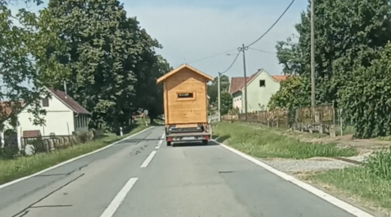 Vozim se ja, kad odjednom ispred mene kućica koja se kreće, ispričala nam je čitateljica koja je snimila nesvakidašnji prizor na cesti kraj Garešnice jedno sunčano popodne. Na snimci se vidi kako netko na prikolici prevozi malenu drvenu kućicu.
