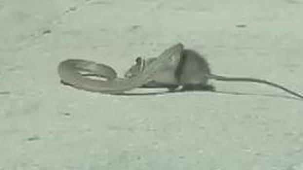 Između zmije i štakora vodila se napeta borba, on ju je vukao za rep, ona ga je grizla gdje je stigla. Na kraju je svatko otišao na svoju stranu ceste