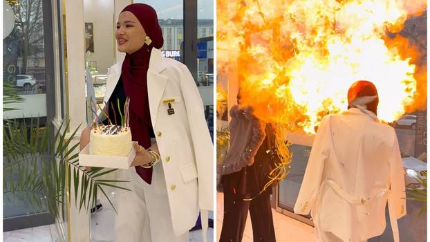 Ovo je šokantan trenutak u kojem su prskalice s rođendanske torte uzrokovale eksploziju balona ravno ispred lica slavljenice. Nozzu Usmanovu prijatelji su iznenadili dostavom balona punjenih vodikom i tortom, no kada je svjećica dotaknula jedan od balona, došlo je do goleme eksplozije. Snimka nadzorne kamere prikazuje veselu slavljenicu kako čeka ispred trgovine u Buhari u Uzbekistanu kako bi primila poklone, samo nekoliko trenutaka prije nego što su se dekoracije zapalile, prenosi Daily Mail.