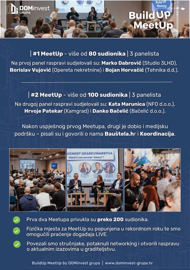 BuildUp MeetUp by DOMinvest postao je prepoznatljiv događaj u sektoru graditeljstva i stanogradnje. Koje će teme dominirati na ovogodišnjem okupljanju? Kad i gdje će biti i mogu li se novi sudionici još prijaviti?