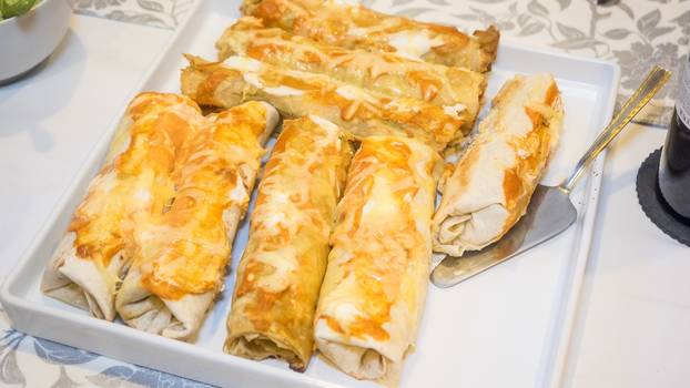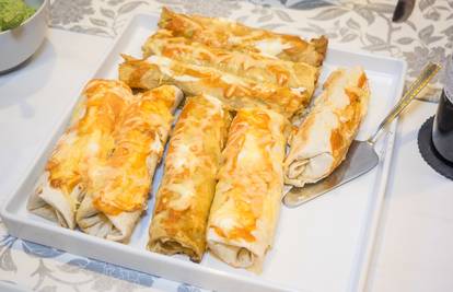 Pileća prsa prvo nasjeckajte na kockice pa ih ispecite na tavi. Prethodno ih začinite sa začinima po želji, možete koristiti papriku u prahu, sol i papar, bosiljak i slično. Ako volite ljuto dodajte i malo čilija. Kad ste ispekli piletinu, napravite umak. Zagrijte vrhnje za kuhanje i dodajte naribani sir, zatim u tu smjesu dodajte piletinu. Smjesa mora biti gusta i rastezljiva od sira. Kad ste to napravili, uzmite tortilje i zapecite ih na tavi s obje strane. U zapečenu tortilju dodajte nadjev i još nasjeckajte rajčice te ih zarolajte i uživajte.