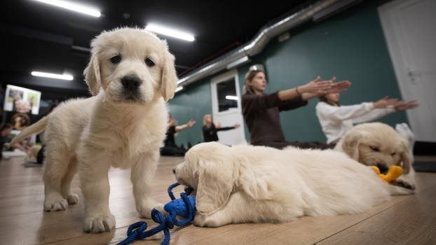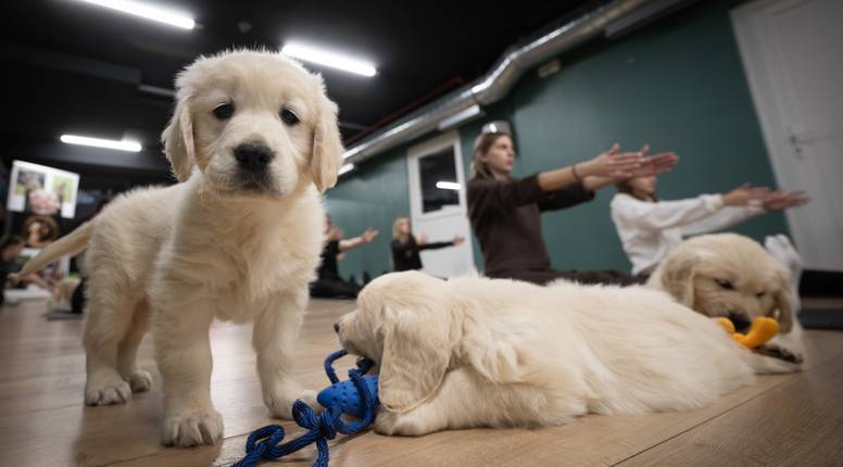 Na radionici u Zagrebu desetak štenaca zlatnih retrivera toliko je uživalo u pažnji da su se, čim bi se uspavali u nečijem krilu, počeli prevrtati na leđa tražeći još češkanja i maženja. Sudionici, naravno, nisu imali ništa protiv - dapače, većina ih je pola sata joge odradila više sjedeći na podu i mazeći male pse nego istežući mišiće i vježbajući. Iza ovog "slatkoga" koncepta stoje Poljaci, braća Sebastian i Hubert Miksza, osnivači Paw Yoge, koji su jogu za štence već proširili diljem Europe. Hrvatska je, čini se, doživjela mali "boom".