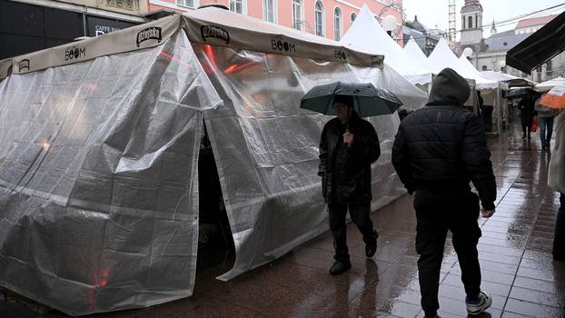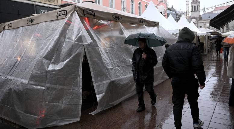 Zagreb se na Badnjak probudio okupan kišom, ali na špici to nije omelo ugostitelje u pripremama za očekivani večerašnji tulum u gradu. Postavljaju se cerade, tende, grijalice...