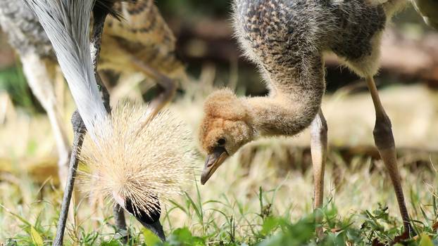 Izlegla su se dva mala krunata ždrala, nova nada za ovu rijetku i elegantnu ptičju vrstu. Mladunci su danas prvi put predstavljeni javnosti i sada veselo istražuju svoj novi dom