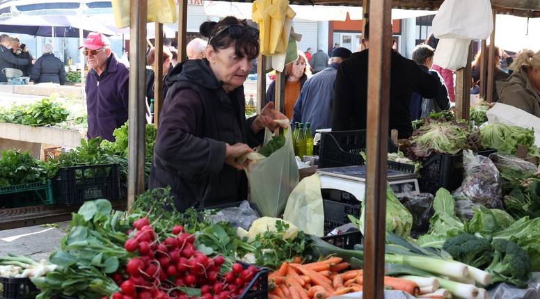 Neke su šibenske domaćice u subotu na pazar došle same, druge su poslale svoje mupkarce, a zelenila, kao i obično, nije nedostajalo - zahvaljujući poljoprivrednicima u zaleđu svježe robe ima