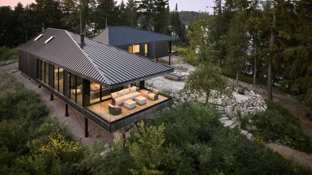 AMSTRONG COTTAGE, TORONTO - Projekt je osmišljen kao destinacija za obiteljski odmor u skladu s principima održivosti i života „off-grid“. Mladu obitelj iz Toronta inspirirala je želja da oživi uspomene iz djetinjstva, pa su dizajnirali kućicu na jezeru u kojem su kao djeca provodili ljetne mjesece. Autorski potpis projekta nosi arhitektonski studio Peter Braithwaite.