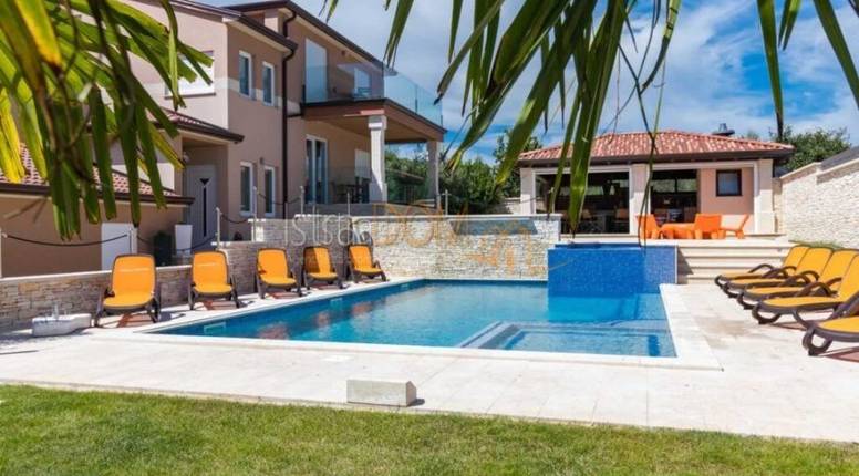 U Istri se prodaje vila s četiri etaže koja uključuje vinski podrum, saunu, jacuzzi i sportsko igralište. Na parceli od 1780 m² nalaze se i bio vrt, masline te vlastiti bunar