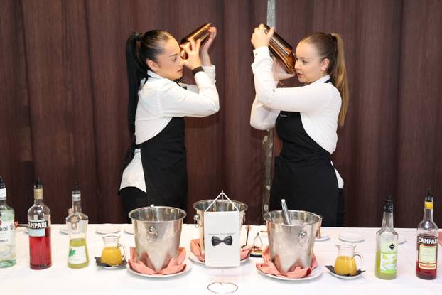 U disciplini sinkroniziranog posluživanja koktela, kojom se ocjenjuje timski rad, kreativnost i izvedba, najuspješniji su bili učenici Srednje strukovne škole bana Josipa Jelačića iz Sinja.