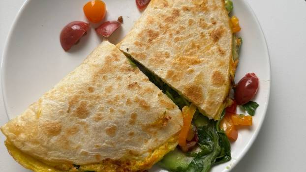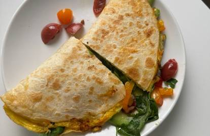 Ovaj doručak nije samo nutritivno bogat, već i vizualno privlačan. Špinat daje svježu zelenu boju, cherry rajčice dodaju sočnost i prirodnu slatkoću, a tortilja sve lijepo povezuje u praktičan obrok koji možete ponijeti i ako žurite. Priprema traje samo nekoliko minuta, a rezultat je fini, zasitan i bogat proteinski doručak s oko 30 g proteina, idealan za početak produktivnog dana.