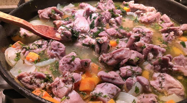 U lonac dodajte minimalnu količinu tekućine, tek toliko da dno ne ostane suho. Meso se ne bi smjelo kuhati u vodi, već se lagano pirja u vlastitom soku i pari koja nastaje tijekom kuhanja pod poklopcem. Tako ostaje mekano, mirisno i izuzetno ukusno.