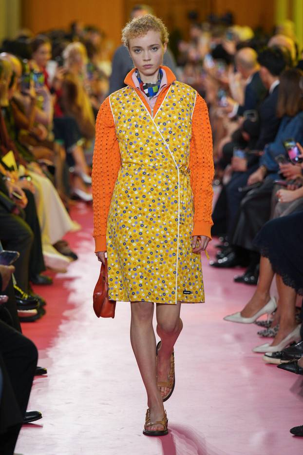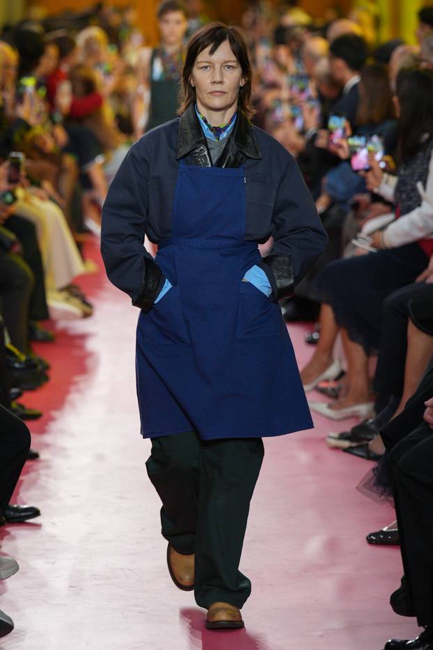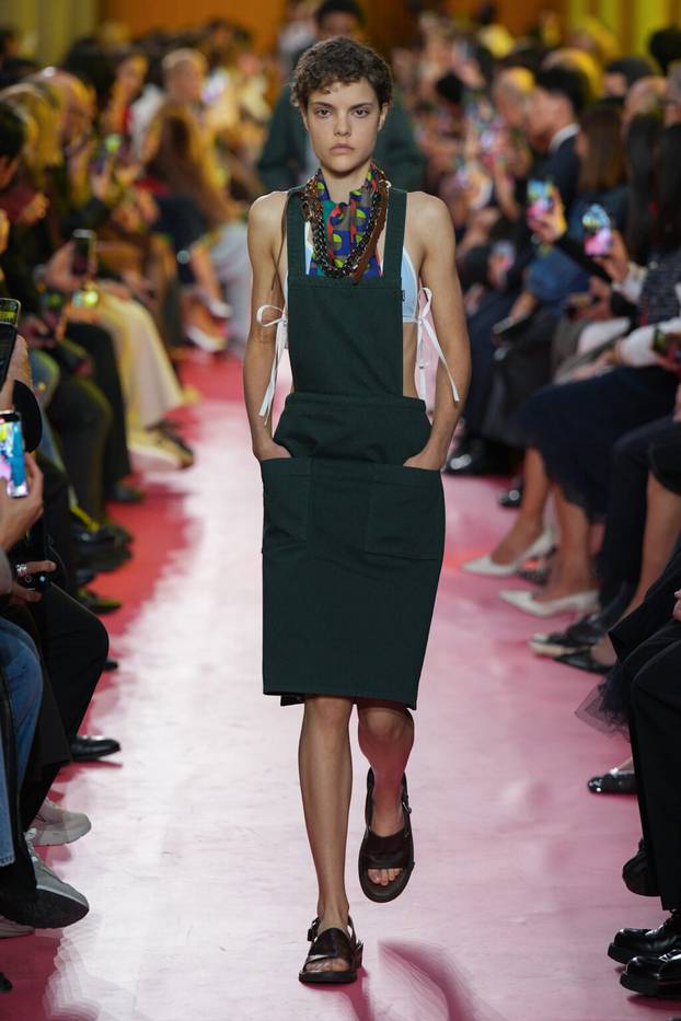 Kreativna direktorica Miuccia Prada ponovno je dokazala da moda može biti snažan alat za društvene komentare. Revija je bila ispunjena pregačama i kutama koje podsjećaju na one koje su nosile naše bake i majke.