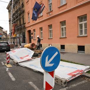 FOTO Dio fasade srušio se kod Britanca, a vatrogasci skinuli 50 kvadrata. Vjetar srušio ogradu