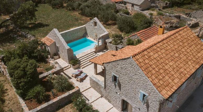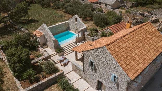 Svi vanjski zidovi koje vidite na kući su originalni, iz vremena kad je to bila bakina kuća, mi smo uređivali zidove samo u unutrašnjosti, nastojeći očuvati sve ono što se može. Imali smo bitno drugačiju ideju, no puno smo toga morali promijeniti jer nismo mogli ‘rastegnuti’ budžet da napravimo sve što želimo. Zato sam većinu rješenja istraživala sama, gledajući na Pinterestu i sličnim portalima, a nerijetko se znalo dogoditi da - kad nešto spomenem ili pokažem inicijalnu ideju - svi budu protiv onoga što sam naumila. No nisam se dala, priča Marina Plenković, vlasnica prelijepe obiteljske kuće za najam u Zastražišću, mjestašcu na malom brdu na istočnoj obali otoka Hvara, o tome kako je stara bakina kuća u konačnici prerasla u nešto baš čarobno. Posebno su očaravajući noćni prizori, zbog pažljivo postavljenog nenametljivog osvjetljenja.