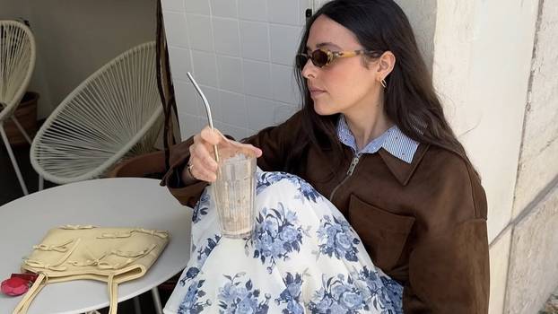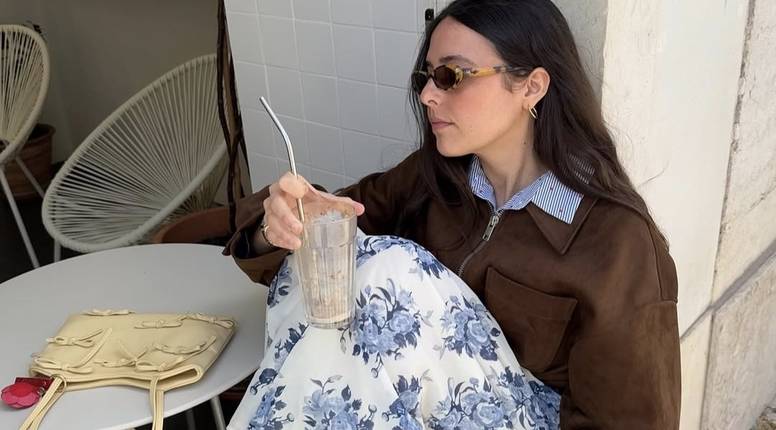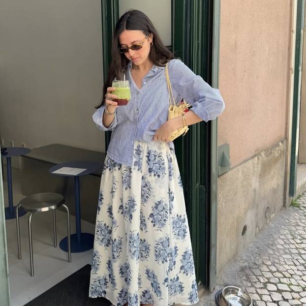 Lagani materijali savršeni su za dane pred nama, a Madalena iz Lisabona nosi ih u verziji slatke suknje. Plavi motivi floralnog karaktera vječito su zanimljivi