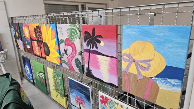 - Najdraži dio mi je atmosfera, svi se međusobno upoznaju, komuniciraju i opuštaju. Potrudim se objasniti svaki korak, da svatko na kraju bude zadovoljan svojom slikom. Prethodno iskustvo nije potrebno, mnogi mi kažu da nisu slikali još od osnovne škole - kaže Ajna uz osmijeh.
