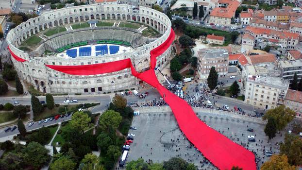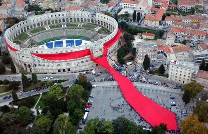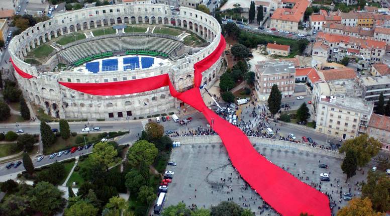 Na današnji dan 2003. oko pulske arene svezana je najveća kravata na svijetu. Uz bogat umjetnički i zabavni spektakl završena je realizacija umjetničke instalacije "Kravata oko Arene" autora Marijana Bušića, ravnatelja Udruge Academia Cravatica.