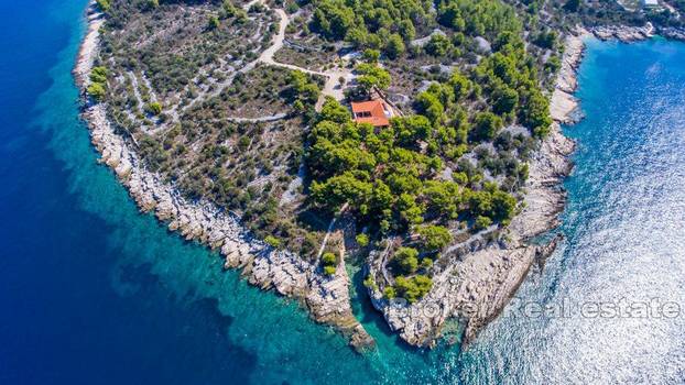 Mediteranska kamena kuća izgrađena je 2011. godine na mirnom manjem otoku srednjedalmatinskog područja, smještena na imanju od cca 8420 m2 okruženom suhozidima koji mu omogućavaju maksimalnu privatnost i osjećaj mira.