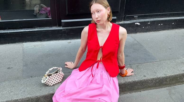 Midi dužina vrlo je praktična, odlično izgleda na razne sandale, ali i cipele s visokom potpeticom. Olga iz Pariza nosi svoju omiljenu suknju u chic kolorističkoj formuli - ružičasto plus crveno
