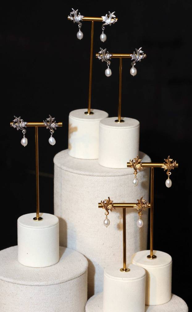 Inspirirane su biljnim ornamentima i motivima svijenog lista, čestim u gotičkim i renesansnim zlatarskim djelima, a izrađene su u srebrnoj i pozlaćenoj verziji s elegantnim riječnim biserom.