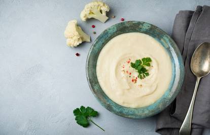 Dodajte i nasjeckani češnjak i kuhajte, neprestano miješajući, a zatim ulijte temeljac. Cvjetaču ubacite u lonac i pojačajte vatru. Kadi zavre, smanjite vatru i kuhajte uz povremeno miješanje. Maknite lonac s vatre i ostavite da se ohladi nekoliko minuta. Zatim juhu ulijte u blender i miksajte. Dodajte maslac i miksajte, a zatim dodajte limunov sok i muškatni oraščić pa opet izmiksajte. U slast!