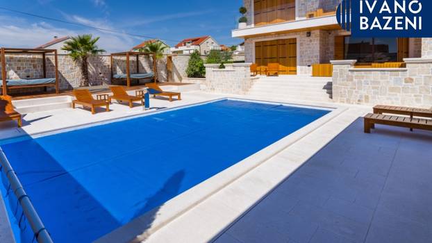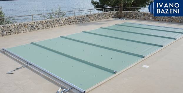 Lamelni (automatski) prekrivač: aluminijske ili PVC- ili polikarbonatne lamele klize po površini i zatvaraju bazen jednim pritiskom. Elegantno rješenje s vrlo dobrom toplinskom izolacijom i mogućnošću ugradnje u novogradnju ili naknadno.