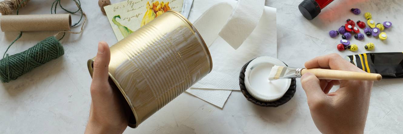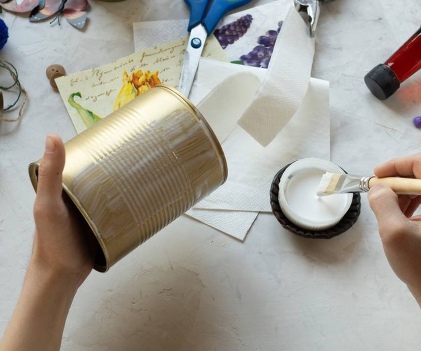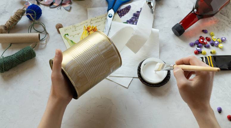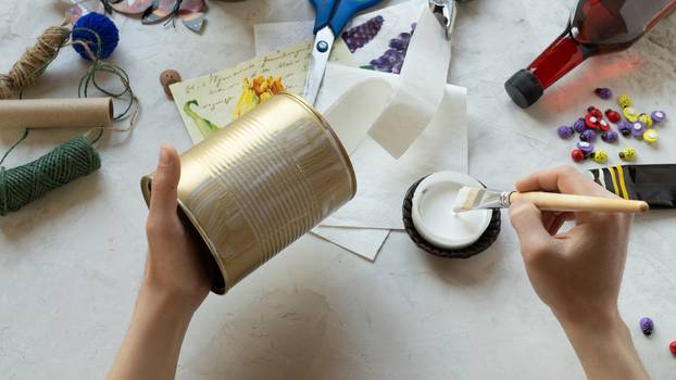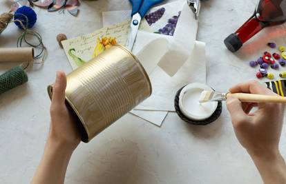 U trgovinama koje nude pribor za hobije možete pronaći razne dekorativne vrpce, tkanine s teksturom, dekupaž papir i samoljepljive folije. S druge strane, ako želite pojednostaviti proces, limenku možete samo obojiti bojom za metal u dva ili tri premaza.