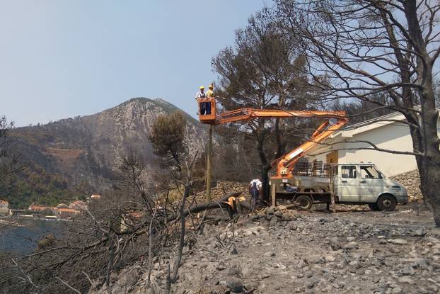 Dok su vatrogasci branili kuće i šume, monteri su radili na sanaciji oštećenih vodova. U dimu, vrućini i iznimno teškim uvjetima pokušavali su što prije vratiti struju ljudima koji su čekali da se život normalizira.