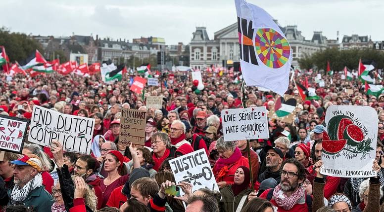 Stotine tisuća prosvjednika promarširale su u nedjelju Amsterdamom, pozivajući nizozemsku vladu da zauzme oštriji stav prema izraelskom ratu u Gazi.