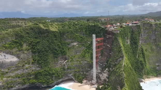 Dizalo je osmišljeno za prijevoz turista do vidikovca "T-Rex litica" na plaži Kelingking, gdje litice nalikuju glavi dinosaura. Cilj mu je bio ponuditi sigurniju alternativu strmoj stazi, na kojoj se posjetitelji često ozlijede. No, bijeli čelični okvir izazvao je žestoke kritike, a mnogi su tvrdili da kvari poznati krajolik.