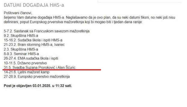 Kao odgovor na cijelu situaciju u redakciju nam je pristiglo priopćenje koje potpisuje Suzana Proroković, predstojnica ureda Zagrebačkih mažoretkinja. Ispostavilo se da je Suzana zaručnica Alena Šćurica, a kao jedna od ovogodišnjih aktivnosti Hrvatskog mažoret saveza navedena je i njihova svadba.