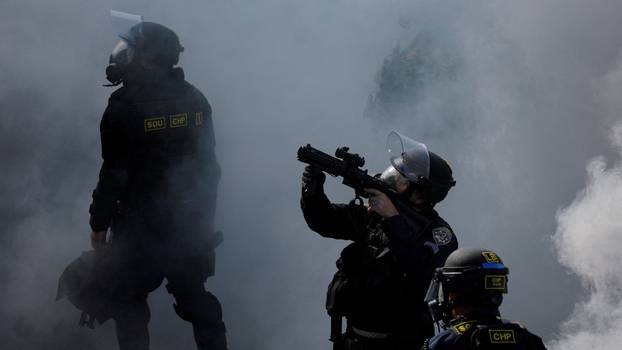 Policajci u Los Angelesu koriste ono što se često naziva "manje smrtonosnim" oružjem kao sredstvo za rastjerivanje prosvjednika.