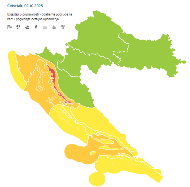 - Vrijeme je vrlo opasno i podrazumijeva visoku razinu opasnosti za zdravlje, pa i za život opasne situacije, posebice pomorcima. Također, prisutan je i značajan rizik od štete za obalnu infrastrukturu. Budite svjesni opasnosti i obratite pozornost i pratite najnovija vremenska izvješća. Savjetujemo javnost da izbjegavaju putovanja i boravak blizu ugroženih obalnih područja. Vrlo je vjerojatno da trajekti neće ploviti pa ako putujete, pratite informacije o prometu - upozoravaju iz DHMZ-a.