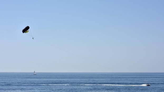 Parasailing omogućava sudionicima da lete iznad vode dok ih vuče gliser, a pritom su vezani za padobran.