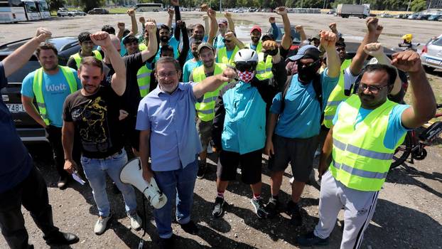 Dostavljači Wolta prosvjeduju u Zagrebu: 'Strani radnici zarade tek 400 do 500 eura mjesečno'