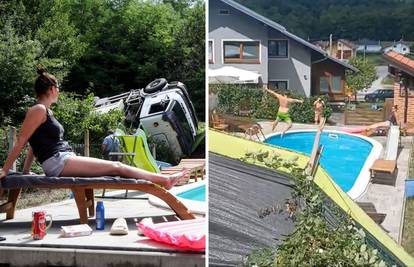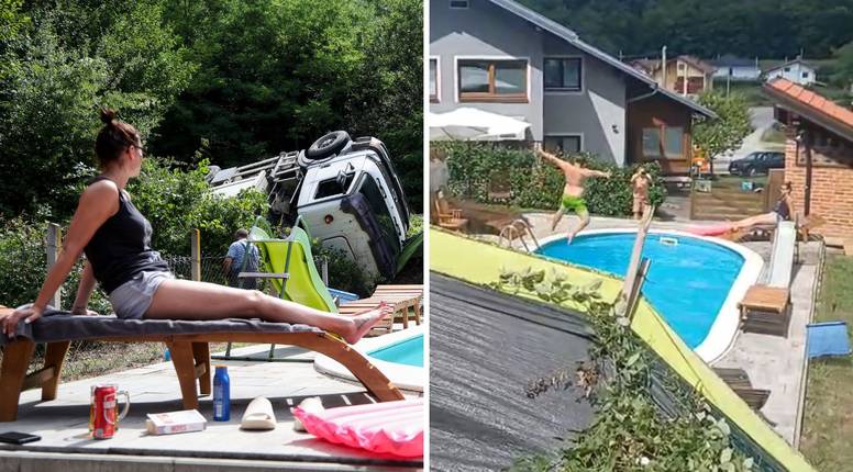 JASTREBARSKO Kamion koji je uletio u dvorište u Jastrebarskom nije previše uznemirio Poljake koji su tamo unajmili kuću za odmor: Čuli smo prasak, izašli smo i vidjeli kamion uz bazen. Malo nas je to šokirali, ali sad nam je zabavno. Ništa nam neće pokvariti odmor, rekli su veseli Poljaci za 24sata dok su se kupali uz prevrnuti kamion