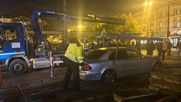 Kako nam javlja naša čitateljica, u subotu u popodnevnim satima jedan je automobil na zagrebačkom Glavnom kolodvoru vozio po tramvajskim tračnicama i zatim upao u rupu te tamo zaglavio.