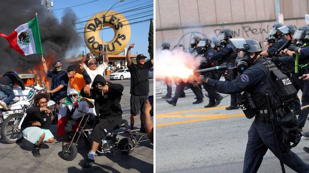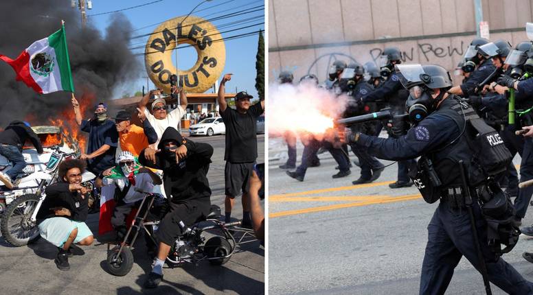 Ulice južnog dijela Los Angelesa pretvorene su u bojno polje. Vatra guta automobile, zapaljena su i policijska vozila, gusti crni dim iz zapaljenih kontejnera ispunjava zrak, vijore se zastave Meksika i drugih, većinom latinoameričkih država... "Ovo je čisto ratno stanje. Nikad nisam vidio nešto ovakvo", kazao je jedan stanovnik LA-a... Prvi krug prosvjeda započeo je u petak navečer nakon što su agenti Imigracijske i carinske službe proveli operacije u gradu i uhitili najmanje 44 osobe zbog navodnih kršenja imigracijskih propisa. Prosvjed je krenuo mirno, ali je uskoro postao nasilan, vlasti u SAD-u tvrde kako su prosvjednici prvi napali policiju. Donald Trump naredio je slanje pripadnika Nacionalne garde u Los Angeles kako bi se odgovorilo na nerede... "Savezna vlada preuzima kontrolu nad kalifornijskom Nacionalnom gardom i šalje 2.000 vojnika u Los Angeles", poručio je guverner Kalifornije Gavin Newsom. A Nacionalna garda mogla bi biti samo početak. Američki ministar obrane Pete Hegseth na Twitteru je objavio kako će, ako se nasilje nastavi, biti mobilizirani i marinci...