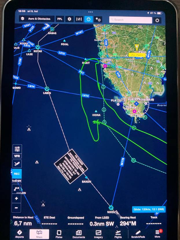 Avion PC-9M bio je angažiran u području sjevernog Jadrana, preciznije uz zapadnu obalu Istre, od hridi Porer do akvatorija u visini grada Poreča, dok je gumena brodica djelovala iz luke Vargarola.