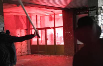 Bačene su baklje i pirotehnika što je izazvalo manji požar u prostorijama SNS-a, pa su nakratko morali intervenirati vatrogasci.
