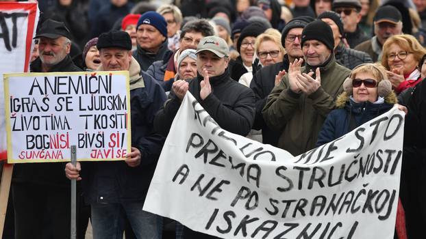 Noseći transparente "Radno mjesto prema stručnosti, a ne stranačkoj iskaznici", "Politika je opasna za zdravlje" i slično, građani Čakovca ispunili su Trg Republike u Čakovcu.
