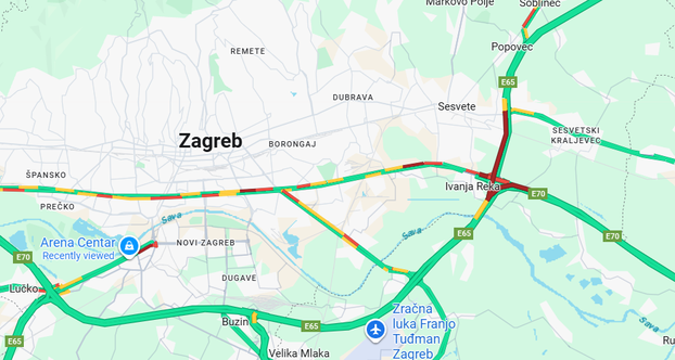 Povećana je gustoća prometa, vozi se usporeno u koloni uz povremene zastoje na zagrebačkoj obilaznici (A3) između čvorova Zagreb zapad i Lučko u smjeru Lipovca te između čvorova Otok Svibovski i Kosnica u smjeru Bregane. Također su gužve na autocesti A4 Goričan-Zagreb između čvorova Popovec i Zagreb istok u smjeru Zagreba, kolona je oko tri kilometra.