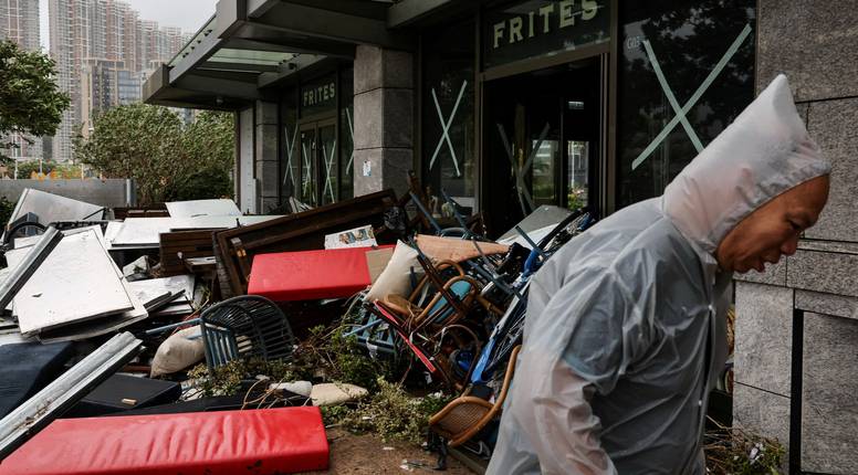 U Hong Kongu su ceste bile puste pošto su vlasti upozorile stanovnike da ostanu u svojim domovima. Poplavljeni su dijelovi istočne i južne obale azijskog financijskog središta.