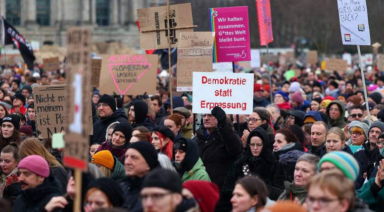 Deseci tisuća građana izašli su na ulice gradova poput Berlina, Hamburga, Leipziga, Kölna i Stuttgarta, izražavajući nezadovoljstvo zbog približavanja CDU-a krajnjoj desnici, posebno u kontekstu nedavnih inicijativa za pooštravanje migracijske politike.